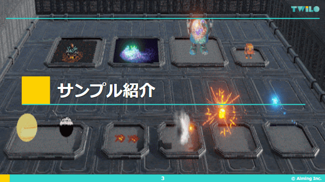アクションゲームを想定したエフェクトについてのサンプル
