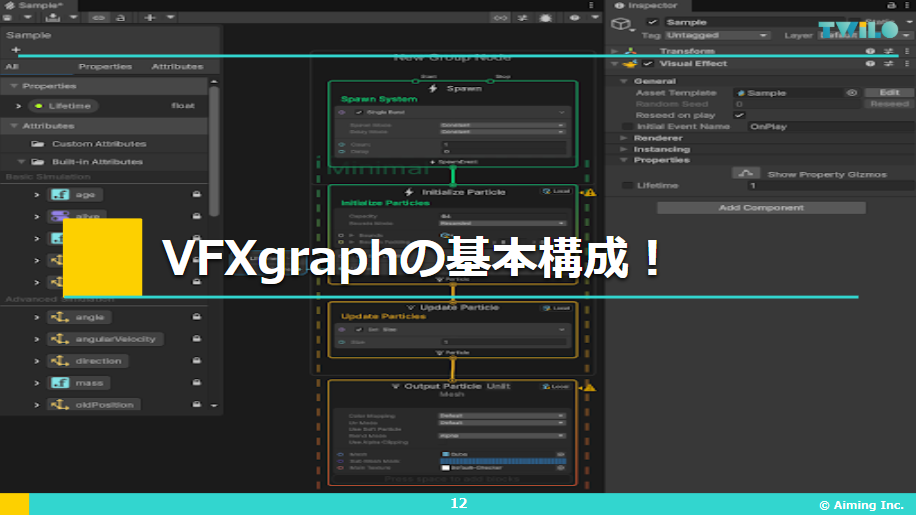 サンプルの紹介の後はチュートリアルに入る前にVFXgraphについての簡単な説明を行いました。